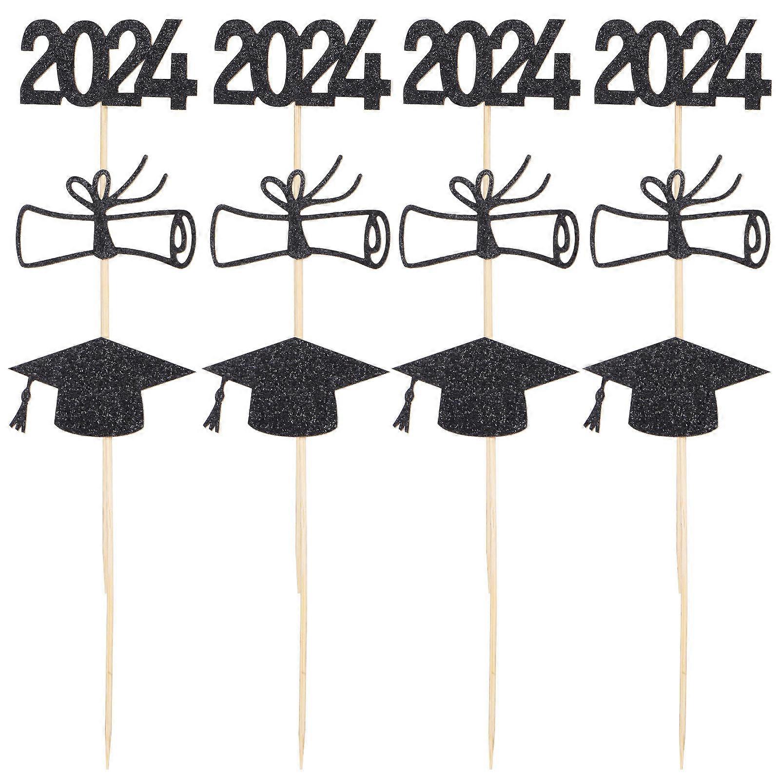 Graduation Party Cake Toppers 12-Pcs Cake Decoration For Students Cap Shape Inserts Assorted Color