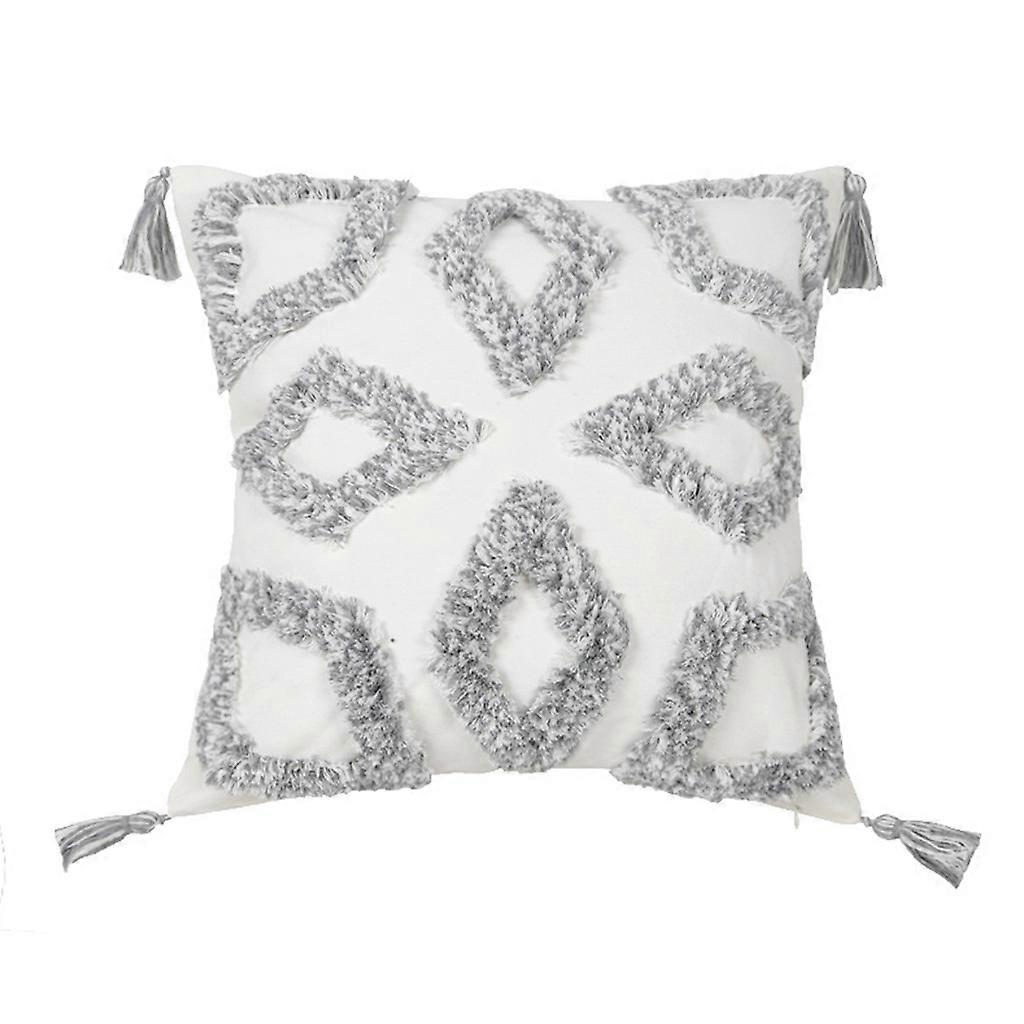 Gray White Tufted Pillow for Case Tassel Morocco Boho Geometric Clover Cushion C