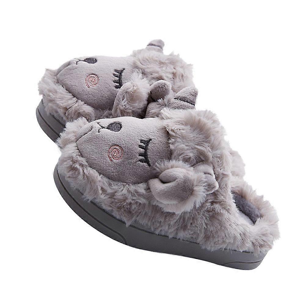 Grey Cartoon Slippers Made Of Plush For Adult Comfortable Indoor Use Non-slip Technology 2 Pairs