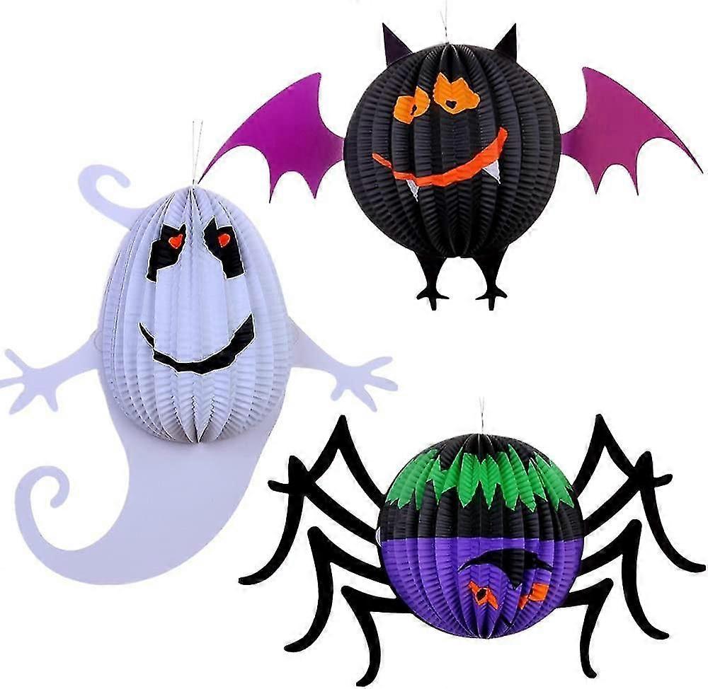 Halloween Lantern, Paper Lanterns 3 Pcs Pop-up Led Lanterns For Halloween Decoration Lanterns Set Pumpkin Spider Bat Skeleton Lanterns