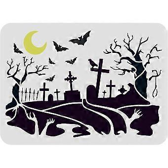 Halloween Painting Stencil Graveyard Moon Bat Withered Tree Design Reusable Template for DIY Home Decor