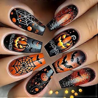 Halloween Press On Nail Medium Length Square Shape With Pumpkin Cobweb Design ABS Material For Party Costume Nail Art Multicolor