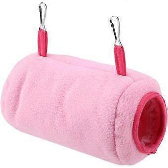 Hammock Toy Tunnel Velvet Warm Bird Parrot Hamster for Winter Plush Fluffy Tunnel Bird Nest(Pink)