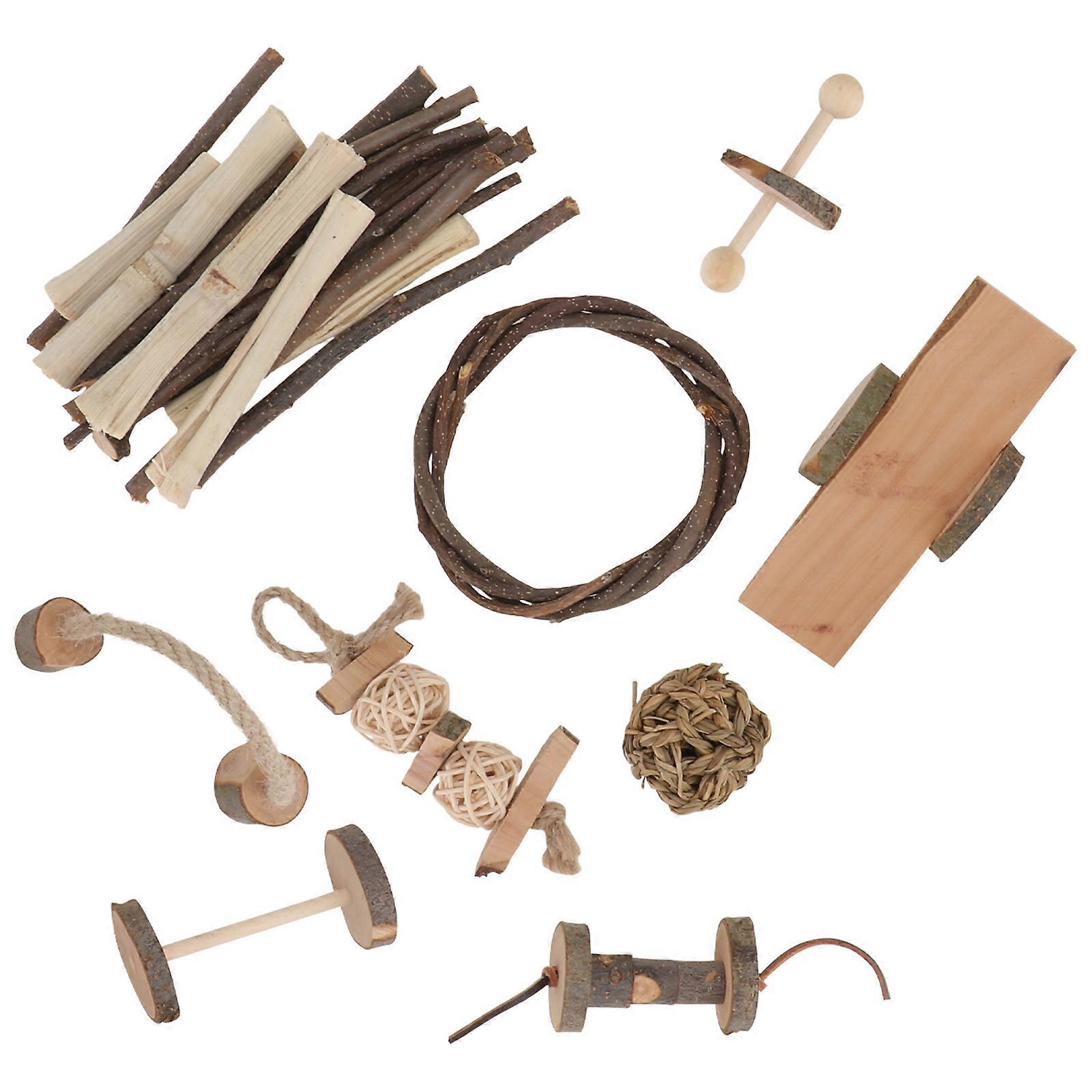 Hamster Chew Toy Wooden Toy for Pet Use 10Pcs Set Assorted Color