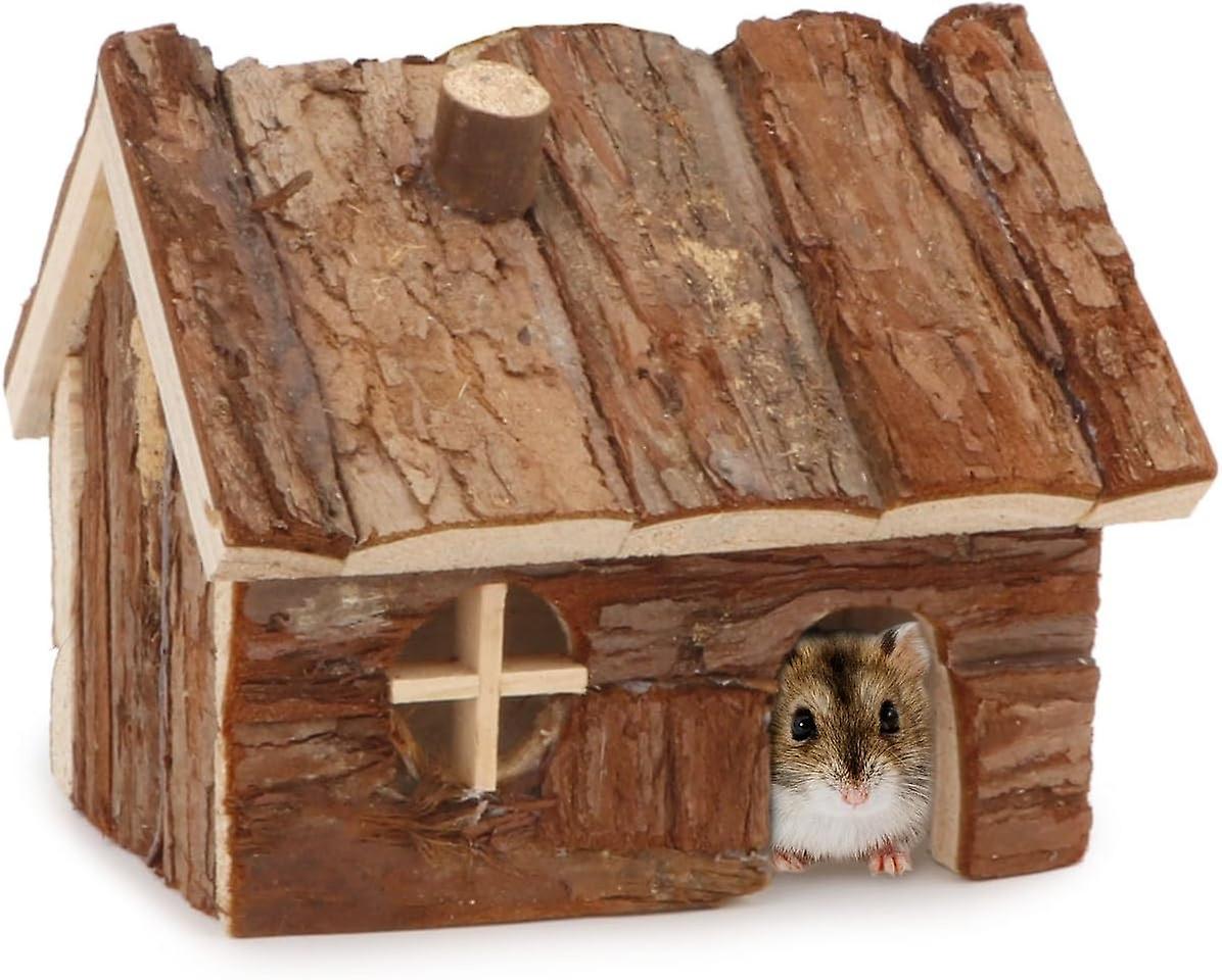 Hamster Wood House Hamster Hideout Hut for Dwarf Hamsters Mice Small Gerbils (Small)