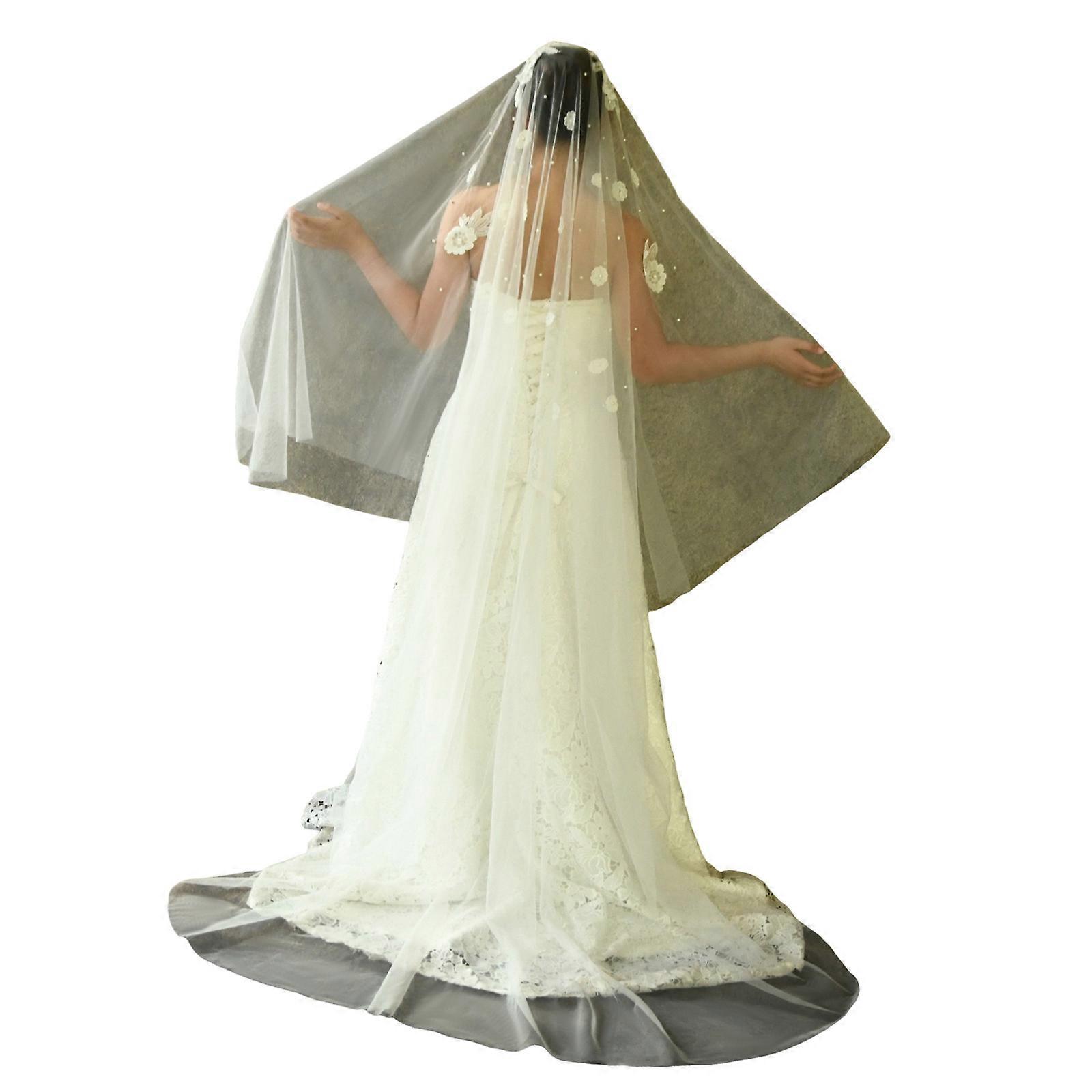 Handcrafted Pearls Wedding Veils For Bride Double Layer Soft Netting Bridal Accessory For Photography Event Ivory
