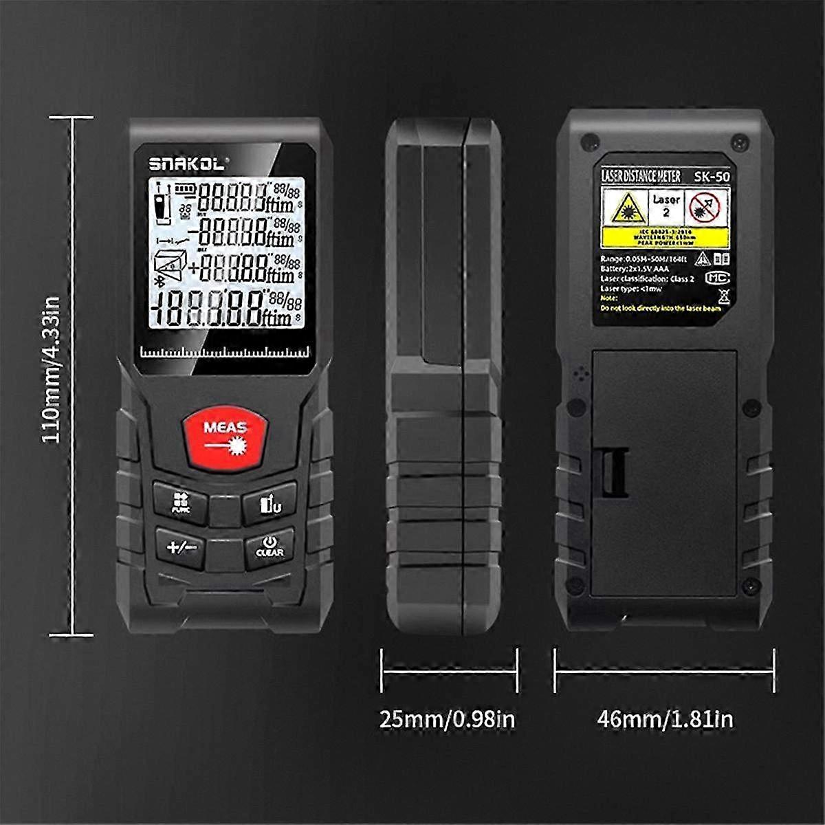 Handheld Laser Rangefinder for Construction Measurement with Multiple Modes up to 50M - Electronic Ruler Test Tool