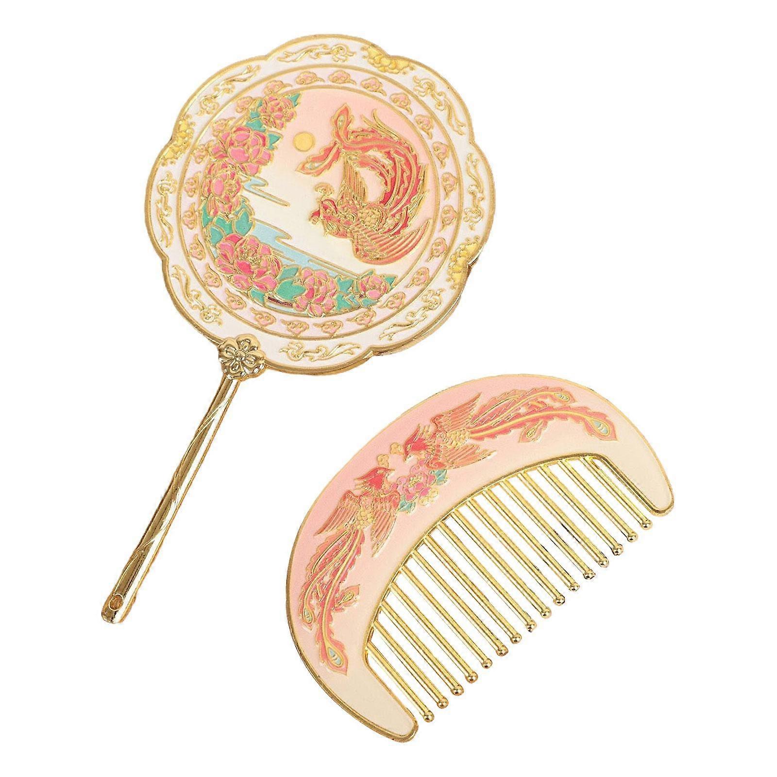 Handheld Mirror Set Makeup Mirror Retro Design Flower and Bird Pattern Embossed