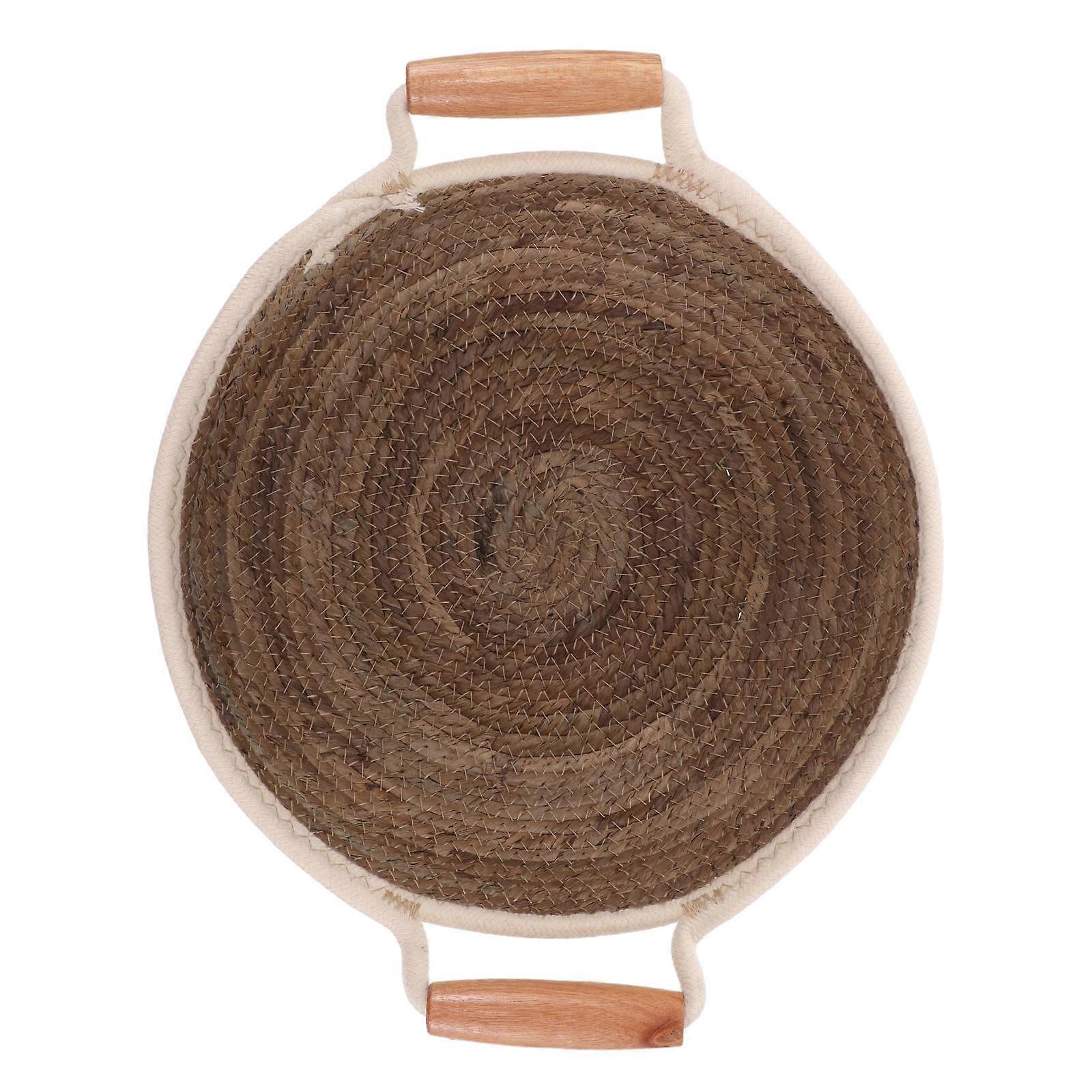 Handled Storage Container Round Wicker Basket for Decorative Use 2Pcs