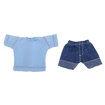 Handmade Two-piece Outfits Pants and Top For OB11 Mini Blythe Dolls Blue