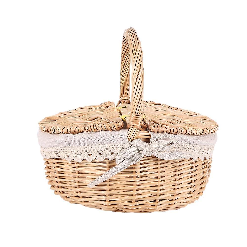 Handmade Wicker Basket With Handle Wicker Camping Picnic Basket With Double Lids Storage Hamper Bas