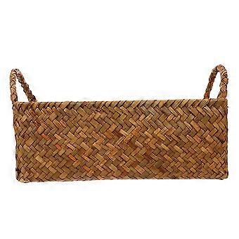Handwoven Straw Basket for Storage Use Dual Handle Rectangular Organizer Bin