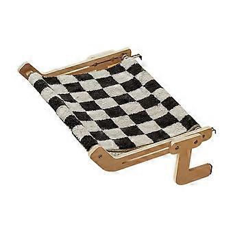 Feature: Multi-scenario use: The cat hammock can be fixed in gaps such as window sills, drawers, chair backs, and bedside. When you're not using the cat hammock, it's easy to remove without disassembly Adjustable Cat Hammock: The cat window perch features adjustable snap-on legs to provide extra support to this cat window hammock. Hooks and legs can be adjusted according to the width of different installation sites, with a maximum adjustment distance of 6 inches Easy to assemble: The cat window perch is easy to assemble, you can install the cat window perch in 5 minutes. Legs come with 2 felt spacers to prevent damage to the wall, can hold up to 40 pounds, suitable for multiple or large cats Stable & space-saving: Compared with cat window perches that are sucked to windows, our cat hammocks can be directly stuck in gaps such as window sills, drawers, chair backs, bedsides, etc., without damaging furniture and walls, or damaging furniture and walls. wall. Taking up valuable space in your home Easy to remove and clean: The canvas can be washed, providing your pet with a clean place to rest. Specification Material: wooden board + cotton and linen cloth Size: 44*34*16cm Package includes: 1*Cat Hammock