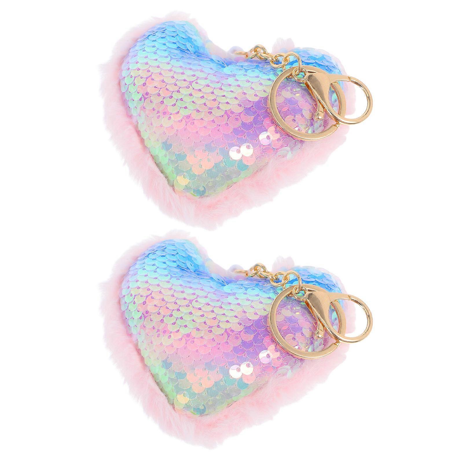 Heart Keychain Charm for Decoration 8Pcs Women Sequin Plush Heart Bag Charm with Sequins
