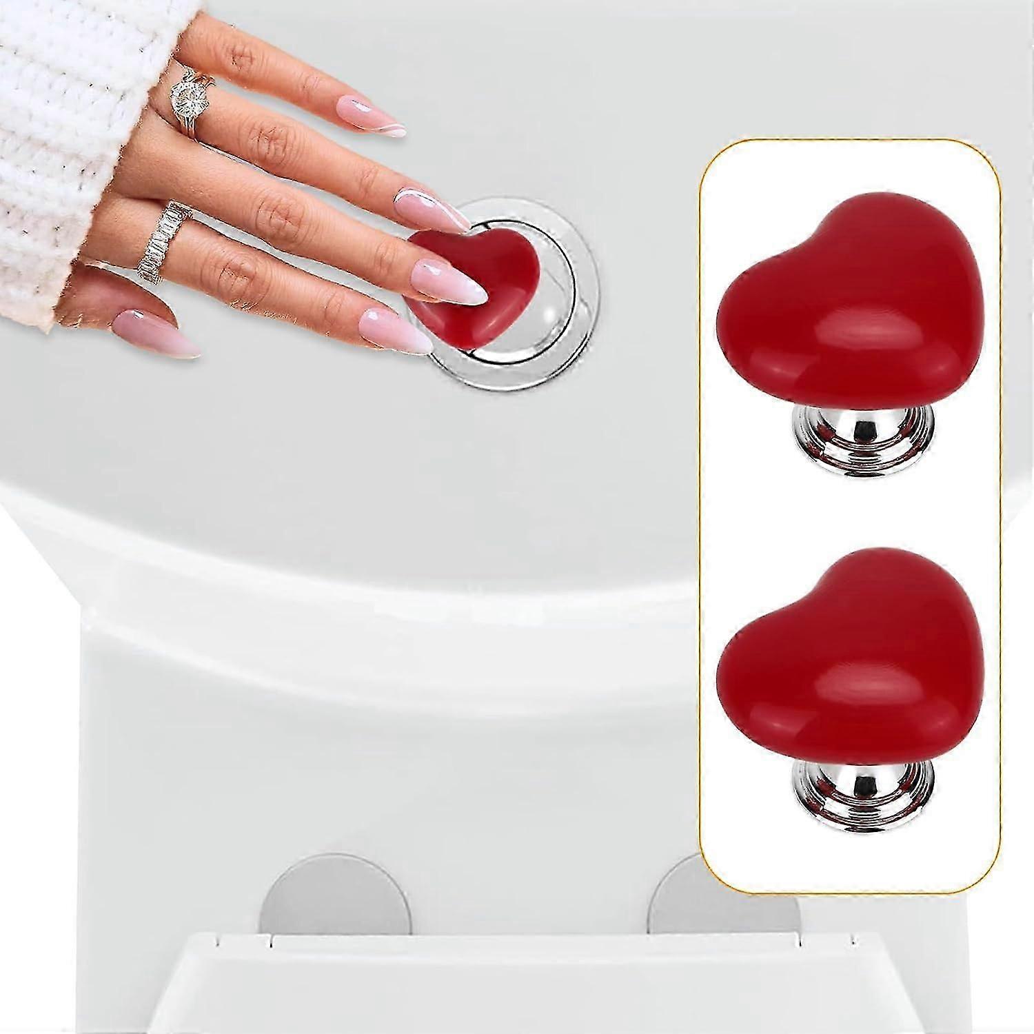 Heart Shape Toilet Lid Lifter, Long Nail Button Aid, Flush Replacement Push Button for Bathroom, Bathroom Handle Tool