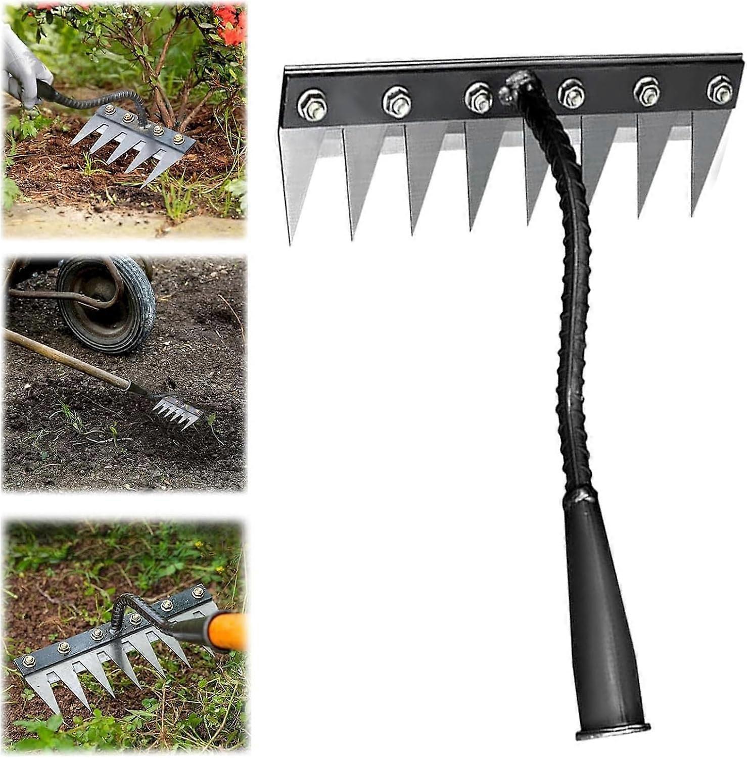 Heavy Duty Metal Garden Rake 8 Teeth Berthaus Weeding Rake Weeding Rake Tool with Handle Bertaus Rake for Weeding/Loosening/Seeding (8 Teeth)