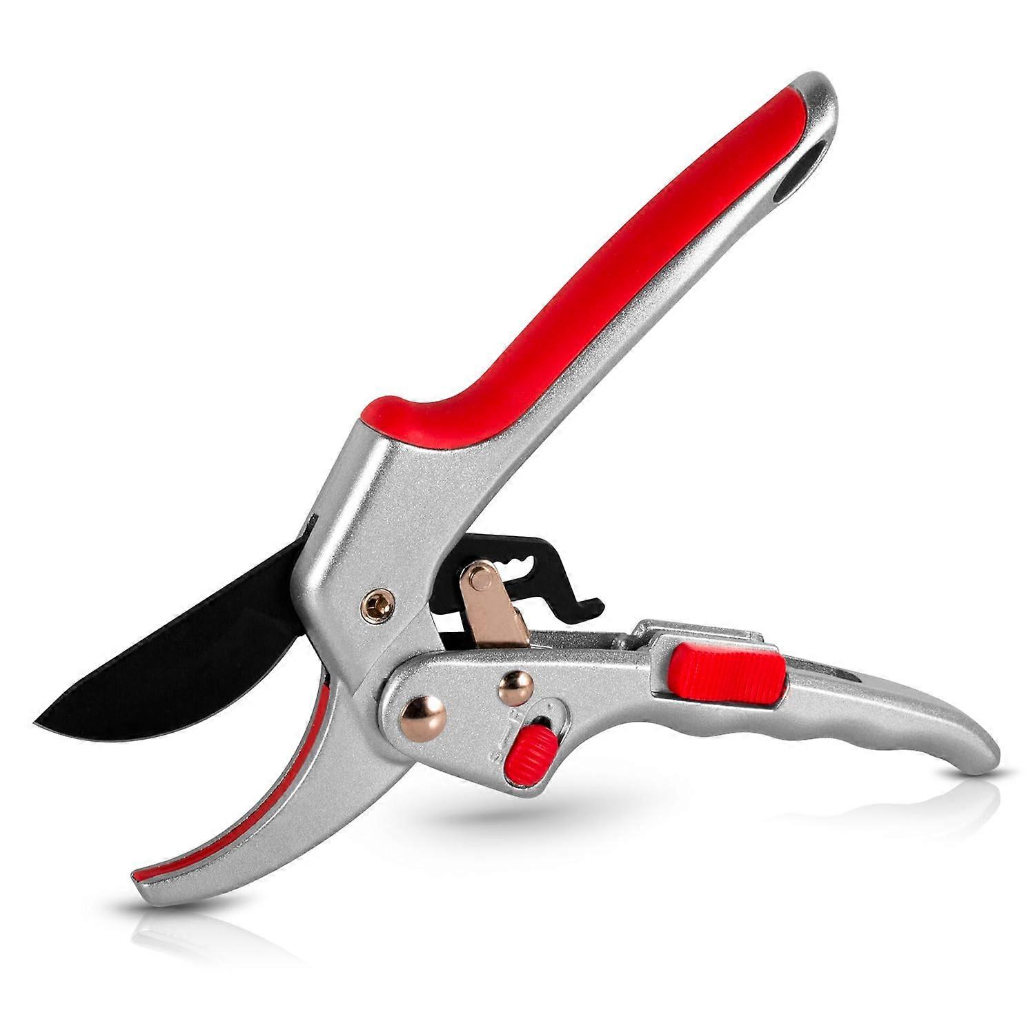 Heavy-Duty Pruning Shears Adjustable 2-Mode Garden Pruner with Safe Lock Design, Portable Silver Red Garden Cutting Tool