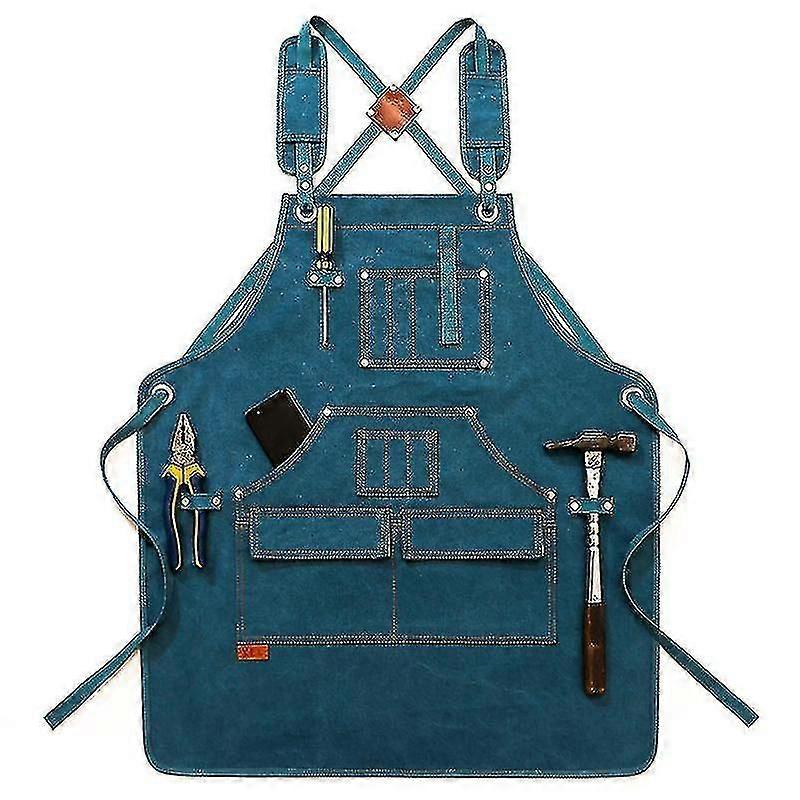 Heavy Duty Waxed Canvas Working Tool Apron With 9 Pockets, Adjustable Strap Aprons, Yellow Sx