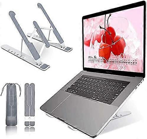 Compact & PortableWith innovative and lightweight design, the laptop stand can be folded into a small size and then you can carry it to anywhere like home & office and during travel. It is easy to open and close when you use it. 6 Eye-levels Ergonomic DesignThe laptop stand offers 6-levels for height adjustment, it can be adjusted according to your preferences. This ergonomic design makes comfortable for watching and typing for a long time, letting you fix posture and reduce your neck fatigue, back pain and eye strain. Sturdy & Full ProtectiveThe double triangle support design make the laptop stand more stable. The large anti-slip silicone pad on the stand keep the stand from sliding , it can protect your device to the greatest extent from falling. Great Cooling DesignThe forward-tilt angle and hollow design forward-tilt angle offers great heat dissipation and more natural airflow to prevent your laptop from overheating during operation. Broad Compatibility This computer stand is suitable for most devices from 10-15.6 inches, Compatible with MacBook, MacBook Air/ Pro, Microsoft Surface, Dell XPS, HP, Lenovo, Acer, Chromebook, Samsung, ThinkPad, iPad Pro and more.