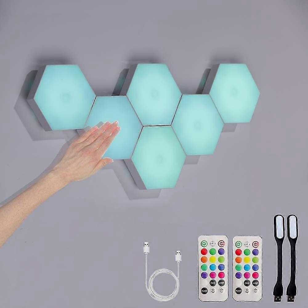 hexagon lights with remote,smart diy hexagon wall lights, dual control hexagonal led light wall panels with usb-power