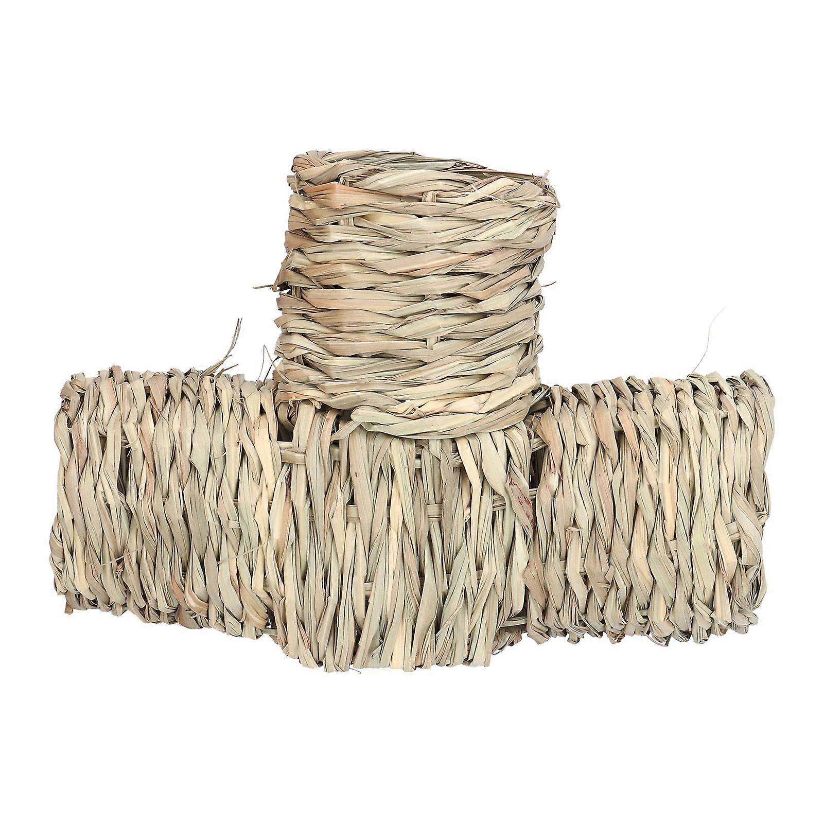 Hideaway Grass Tunnel Toy Straw House with Four Open Entrances for Rats Syrian Hamster Ferrets Guinea Pig
