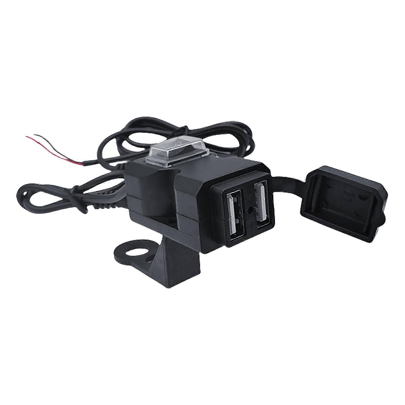 High Efficiency Motorcycle USB Port Power Adapter Waterproof Power Supply Socket with Double Charging Capability, Black Multicolor