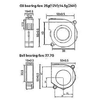 High-Performance 12V 5015 Turbo Blower 3D Printer Cooling Fan: Low Noise, 2-Pin Connector, Fast Rotational Speed