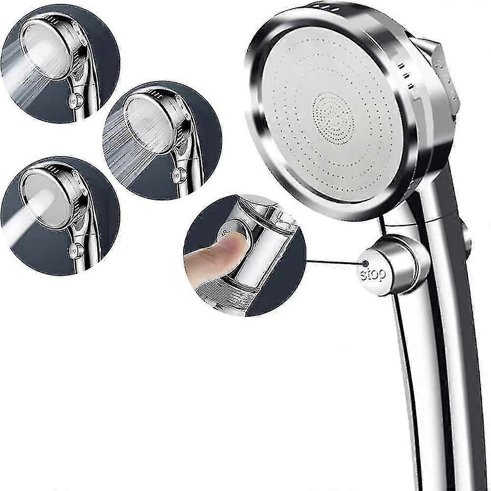 HANDHELD SPRAYS WITH PUSH BUTTON FLOW CONTROL Have you ever been splashed by the water sprayed by a shower head bouncing acound wildly when you couldn't hold it? Our Showerhead is the solution. Revolutionary push-button flow control for one-hand operation. You can hold hand shower and shut off the water while working shampoo in or lathering up. No dial to turn, you can switch flow settings with the same hand to enjoy 3 shower settings with a simple push by your thumb. 3 MODE ADJUSTABLE SETTINGSPower Massage, water saver mode or mixed mode the choice is yours. Dense small holes designed makes the generated water mist be thicker, give you a SPA-like shower experience while saving water by 30%. Upgraded 360 rotation angle-adjustable solid swivel ball joint nut for reliable leak-free connection and different angle position shower needs. HIGHT PRESSURE SHOWERHEAD Engineered with micro technology which makes the outlet holes smaller and denser, our showerhead increases the pressure of the water flow effortlessly, provides you adequate water and comfortable spray performance even under low water pressure. EASY INSTALLATION IN MINUTES No need to call a plumber - Simply remove your current shower head and replace with the shower head to any standard shower arm. No tools needed, just tighten by hand. Hose and holder are not included) [PREMIUM QUALITY ]: With high quality ABS material and chrome plated technology without toxicity, our high pressure handheld shower head is lightweight, durablelead-free and rust-proof. Ensure your shower safe and comfortable. By offering superior convenience, it is ideal for Bathing Kids, Washing Pets and Cleaning applications or used as RV / Camper shower head. Packing 1 x High Pressure Shower Head