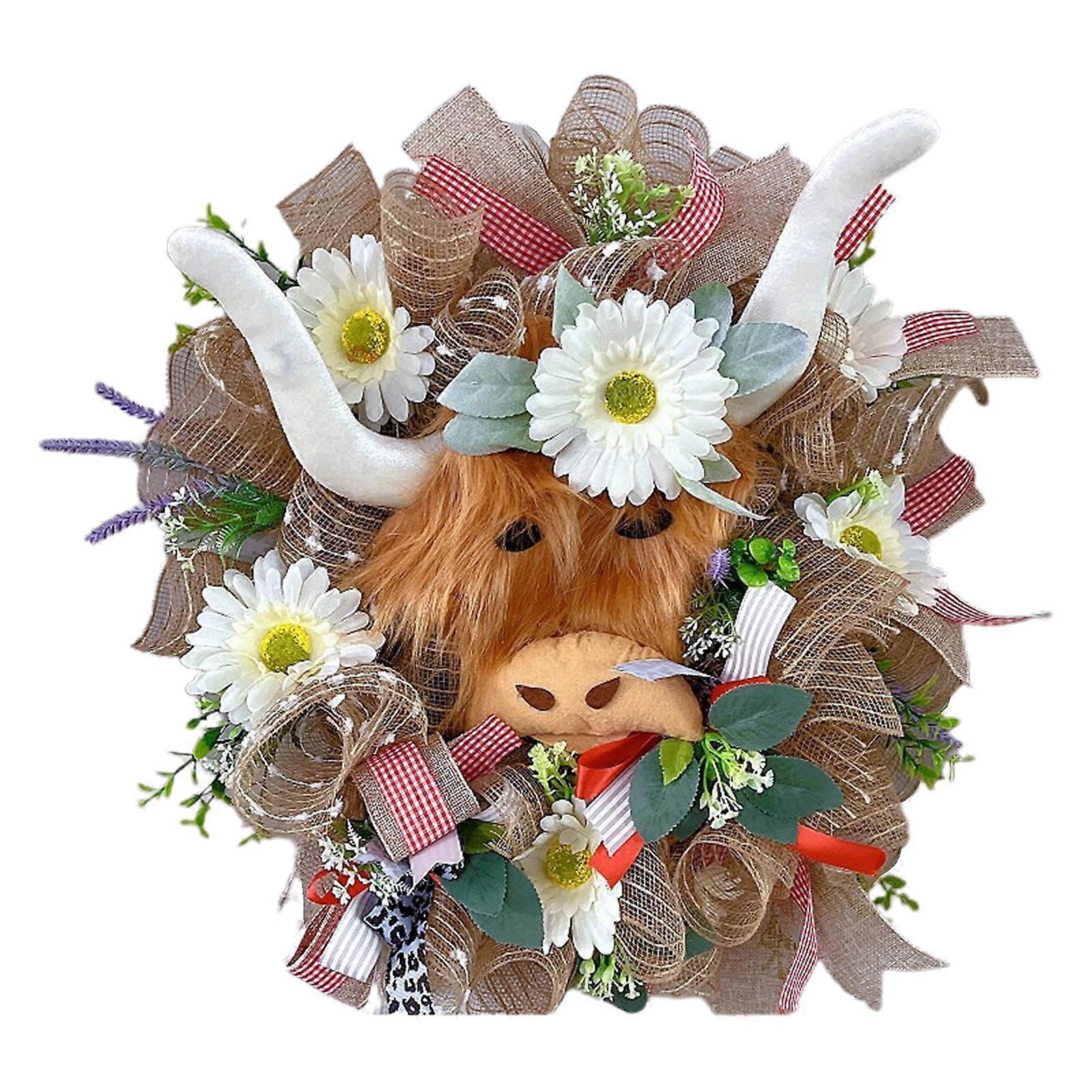 Highlands Cow Wreath Spring Decor Wreath for Front Door Rustic Welcome Wreath