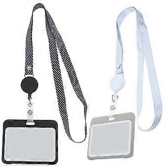Horizontal ID Badge Holder with Lanyard – Transparent Photo Cover for Staff, Nurses, Students – Easy to Clean, Organize, and Practical Design – Grey