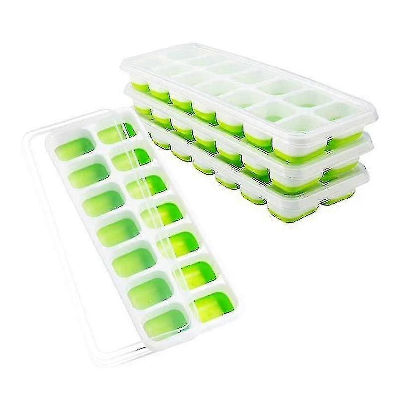 Ice Tray 4 Reusable Silicone And 14 Ice Tray Molds, With Removable Lid