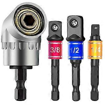 Different color-coded rings clearly help to quickly pick the right ring. Our products are the latest upgrades and are of the highest quality. Christmas gifts are suitable for father/father, husband, boyfriend, DIY.CR-V and black phosphate surface. Forged with heat-treated chrome-plated vanadium steel for superior strength, each adapter has a corrosion-resistant black phosphate finish to prevent rust and corrosion. The exhaust ball on the adapter provides a secure fit for the socks, reducing wear and tear, preventing the corners from falling off and ensuring no shaking.For installation of pneumatic screwdrivers, electric screwdrivers, pneumatic drills, manual screwdrivers and other hexagonal tools. This is an perfect conversion accessory. Suitable for universal sockets, impact adapters and reducer kits, universal connectors, socket adapters and drive reducer kits, drive impact socket extension strip kits, drive impact socket kits.This adapter kit is designed to provide a secure attachment to your existing tools. Provide extra length to reach a variety of hard-to-reach spaces. The spring ball lock ensures a close fit to the driver's head to prevent it from slipping during use. Specially machined for safety, hand-held driver, drill or impact wrench.Can be connected to drill bits, rechargeable drills or hand wrenches to extend them to non-contact odors, twisted screws, nuts, etc. [Features] 105degree design space tight, extending the power of cordless screwdrivers - 100 inches / lb / lb . Torque, 400 RPM. These tools are perfect for light drilling, slow/sailor driving, such as cordless drills, ratchet screwdrivers, etc.Features:The 105degree design is suitable for small spaces and extends the power of a cordless screwdriver with a maximum torque of 10n/m.The 1/4inch hex drive shaft is quick and replace compatible and is suitable for most electric drill and driver wheels.105 degree right angle driver drilling and driving force screwdriver drilling accessories with 1/4inch hex quick change drive and magnetic drillQuick and easy, connect to a standard hex driver.Can be connected to drill holes, rechargeable drill holes or manual wrenches.Simple, lightweight and quick to connect to a standard hex driver.The gears are mounted in die-casting with 3 durable ball bearings.The magnetic 0.64 cm hex socket accommodates standard drill bits and drill bits.A perfect and convenient tool for hard to reach places. Connect the hand drill and the hand wrench.specification:Model: 1/4 inch (6.35mm)Suitable for: 1/4 inch 6.35mm hex bit screwdriverColour:Black + silverMaterial:steelSize: about 5.9 x 3cmPackage Contents:1 x (1/4 * 1/4 * 65mm length -- 1/4 inch shank can be converted to 6.35mm square head)Socket Adapter1 x (3/8 * 1/4 * 65mm length -- 1/4 inch shank can be converted to 9mm square head)Socket Adapter1 x (1/2 * 1/4 * 72mm length -- 1/4 inch shank can be converted to 13mm square head)Socket Adapter1 x 105 Degree Right Angle DrillOnly the above package content, other products are not included.Note: Light and different displays may cause the color of the item in the picture a little different from the real thing. The measurement allowed error is +/- 1-3cm.