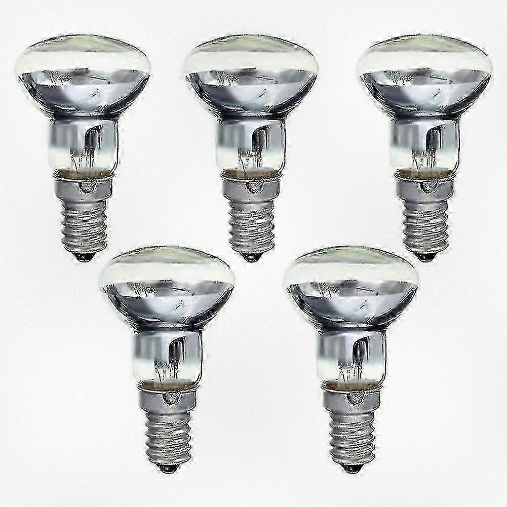 R39 reflector bulb with E17 base, ideal for lava lamps, glitter lamps, and cabinets. Suitable for standard small lava lamps, ensuring even heat distribution for optimal lava flow. Durable and energy-efficient with stable performance. Specs: - Voltage: 220-240V - Wattage: 30W - Base: E14 (136mm) - Material: Aluminum - Color: Transparent Package includes: 5 x bulbs Note: Slight color variations may occur due to lighting and display differences. Size tolerance: 1-3cm.