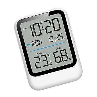 Indoor Thermometers Hygrometer Clock Featuring Alarm Function And ±1℃ Accuracy For Home Use White