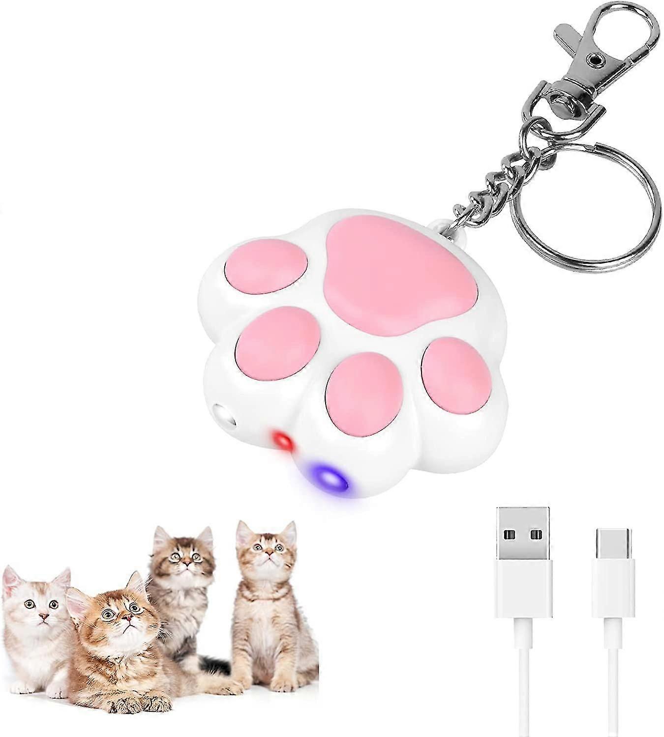 Interactive Cat Toy, 7-in-1 5 Patterns Rechargeable Usb Paw Shape Led Lighting Toy Interactive Toy Keychain For Pets Training Device White