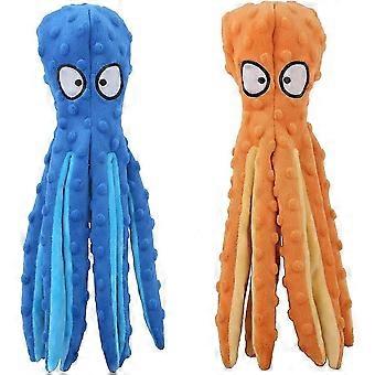Interactive Dog Chew Toy: Durable Squeaky Toy Octopus for Dogs (Blue+Orange)