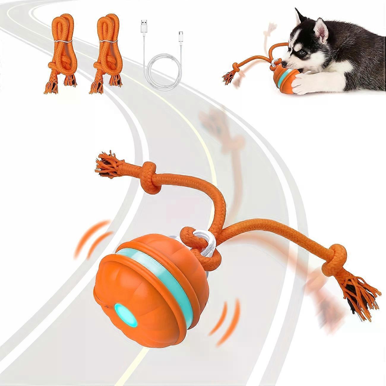 Interactive Dog Toy for Small Breeds - Motion-Sensor Rolling Ball with Bird Call & Music, USB Rechargeable, White & Orange, Automatic Dog Plaything