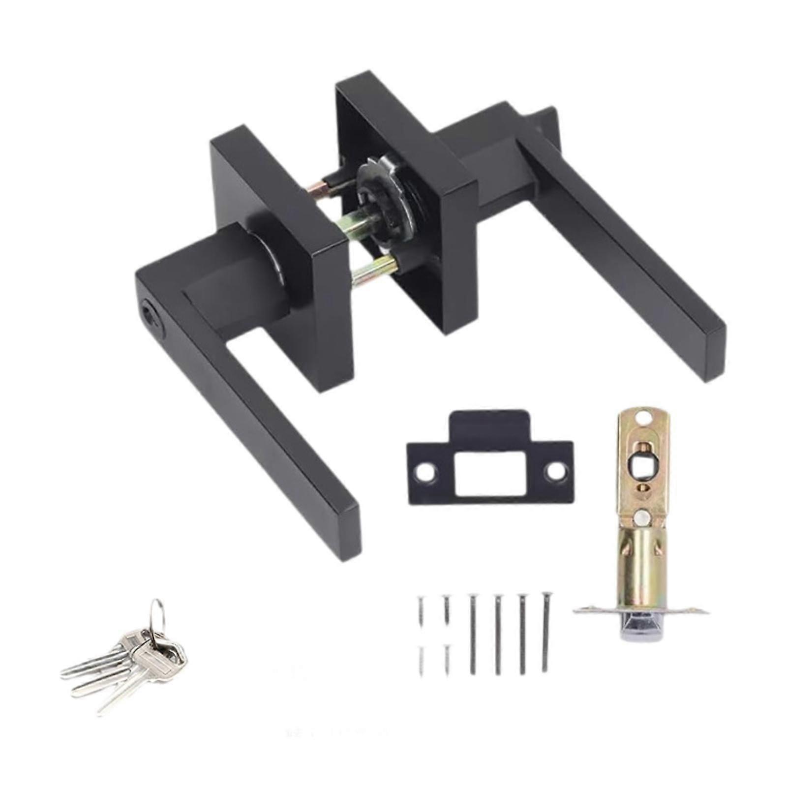 Interior Door Knob with Lock and Key for Bedroom Simple Assembly Matte Black