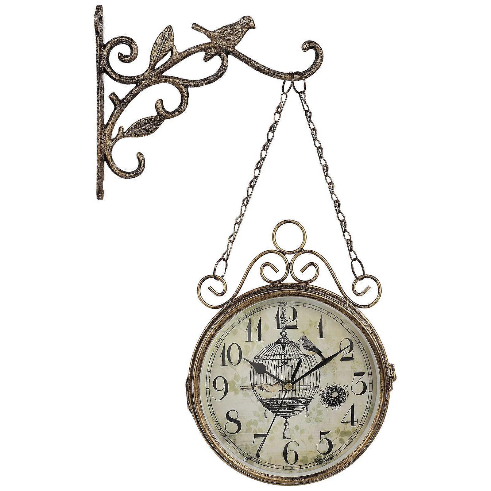 Iron Art Bird Shape Wall Clock Retro Double-face Wall Clock Digital Hanging Clock Creative Art Decor (Without Battery)