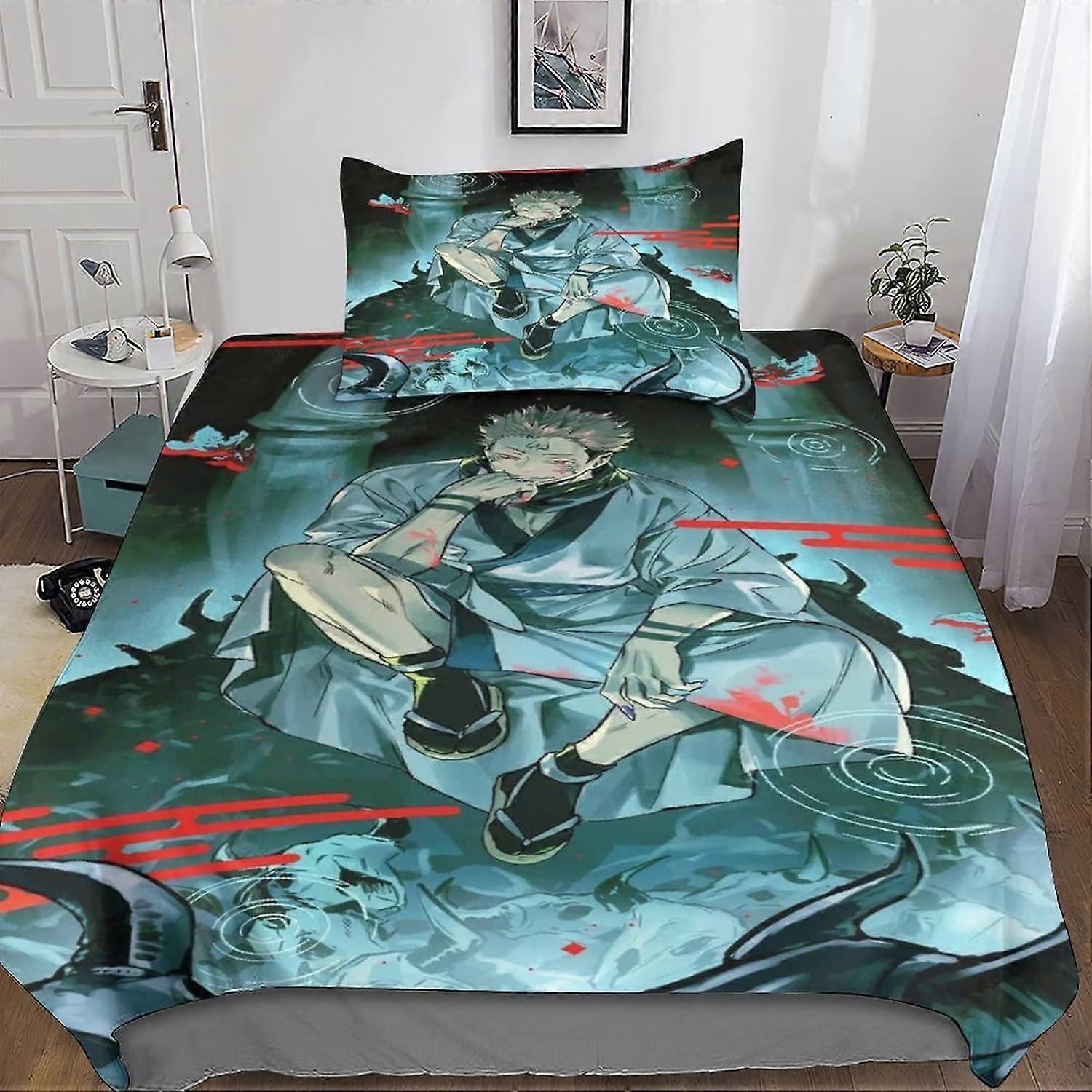Jujutsu Kaisen Bedding Set Bedding Set for Adults and Children D-Line Witchcraft Print Pattern Soft Microfiber Duvet Cover with Pillowcases 135*200 CM