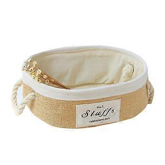 Jute Storage Basket Fabric Sundries Snacks Basket With Rope Handle Portable Desktop Organizer 3 Large Oval