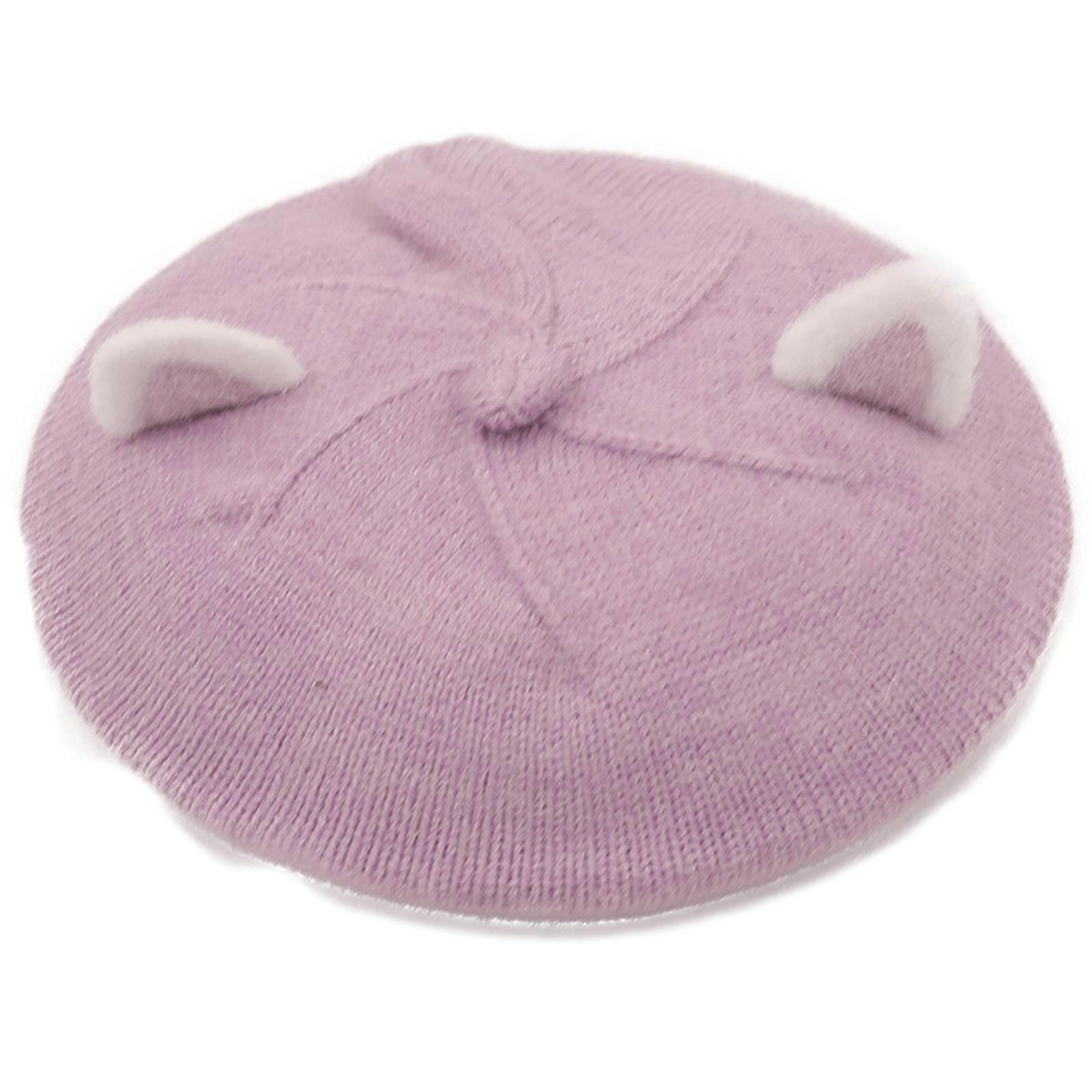 Kawaii for Cat Ears Painter Hat Solid Color Knit Beret Windproof for Skiing Camp