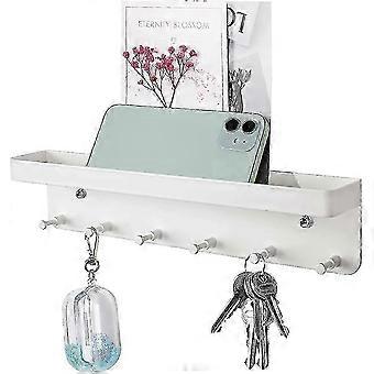Key rack with shelf, 6 hooks self-adhesive wall key holder, small key hook for