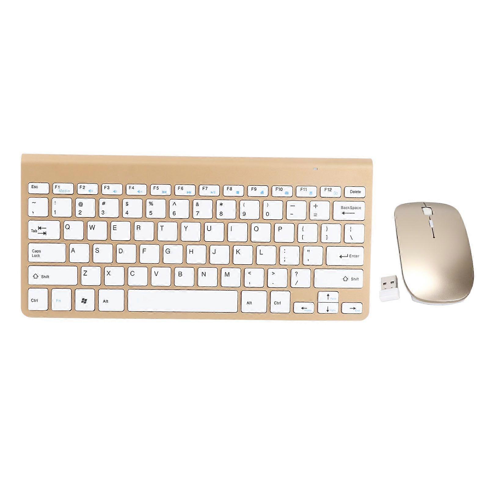 Keyboard Mouse Set 2.4G Wireless 78 Keys USB Thin Etched Keycaps Ergonomics Mute Button Computer Keyboards Mouse Gold