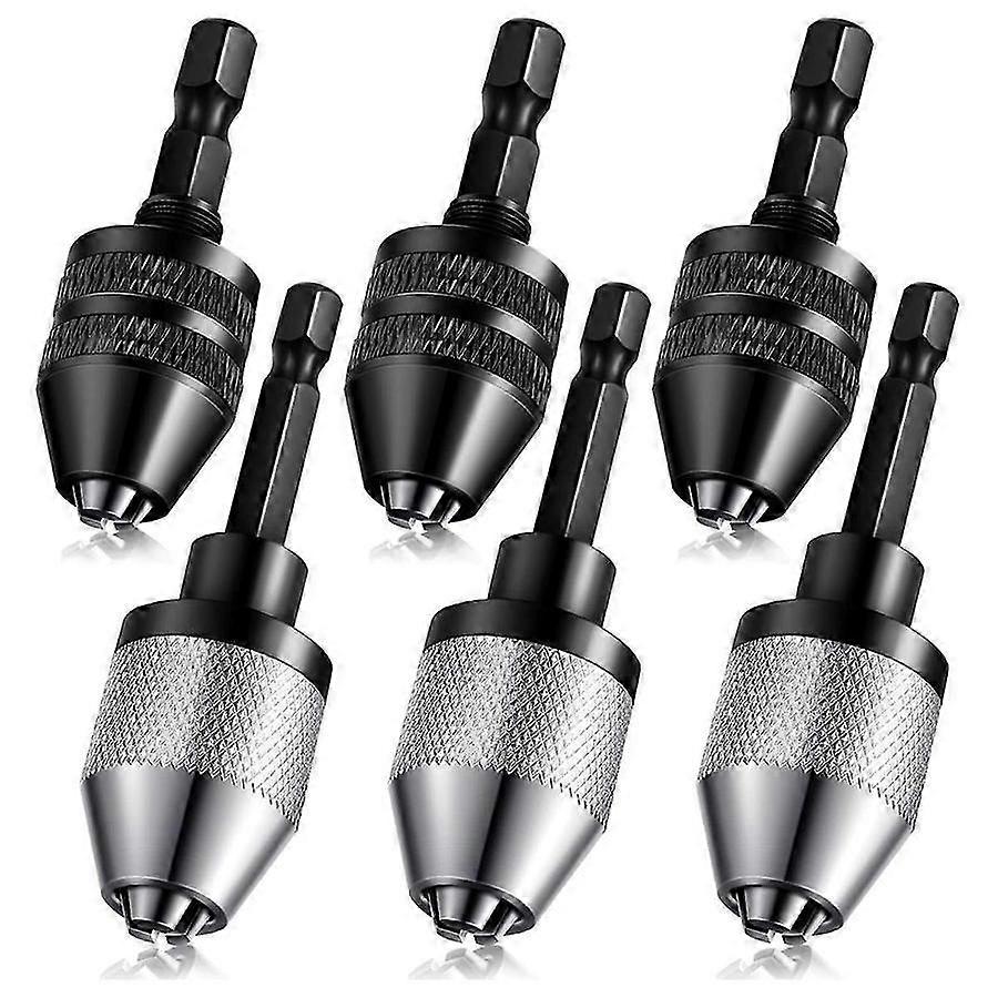 Proper accessories: silver for 0.3 - 6.5 mm, black for 0.3 - 3.6 mm, easy to use, easy to install, safe, fast.<br> Features: these keyless drill chucks can easily turn a cordless electric screwdriver into a drill or grinder; You need to turn the tail to make adjustments to quickly switch tasks and maintain work progress; They are essential power tool accessories.<br> Easily lock and release drill bits to quickly convert: change hexagonal shank drives to drilling RIGS; Hexadecimal drive power tools are allowed to be applied with drill bits.<br> Wide range of applications: these drill chucks have various specifications and can be adapted to most drills and cordless power screwdrivers; They can be applied in car, garages, warehouses, offices, homes, etc.<br> Easy loading and unloading: this keyless drill chuck converter can go from driving to drilling in seconds, and also give you the freedom to drill with one hand, which is great for working in tight spaces.<br> Please note:the physical slightly color difference or difference, does not affect the use, please do not mind, thank you!<br> Colour:As Shown<br> Material:aluminum<br> Package Contents:<br> 6 * Keyless Drill Chuck Bit<br> Only the above package content, other products are not included.<br> Note: Light reflection and different displays may cause the color of the item in the picture a little different from the real thing. The measurement allowed error is +/- 1-3cm.