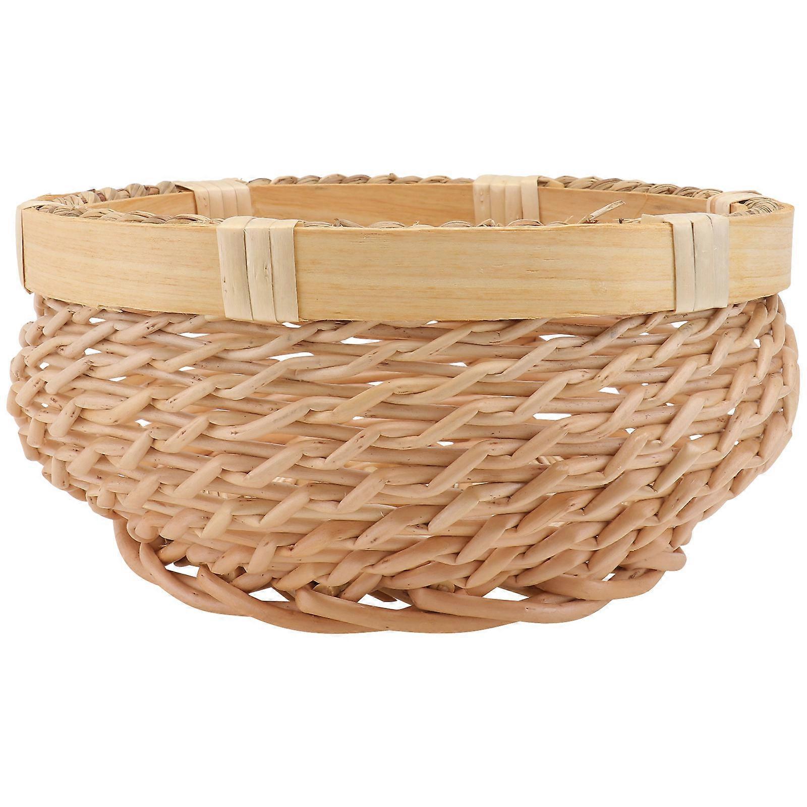 Khaki Woven Fruit Basket for Home Use Made of Synthetic Material Easy to Clean and Reusable 1Pc