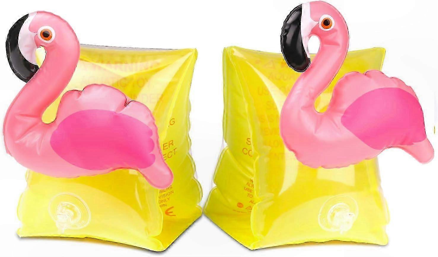 Kids Inflatable Swim Armbands with Cartoon Design, Yellow & Flamingo Pattern Floatation Sleeves for Water Fun
