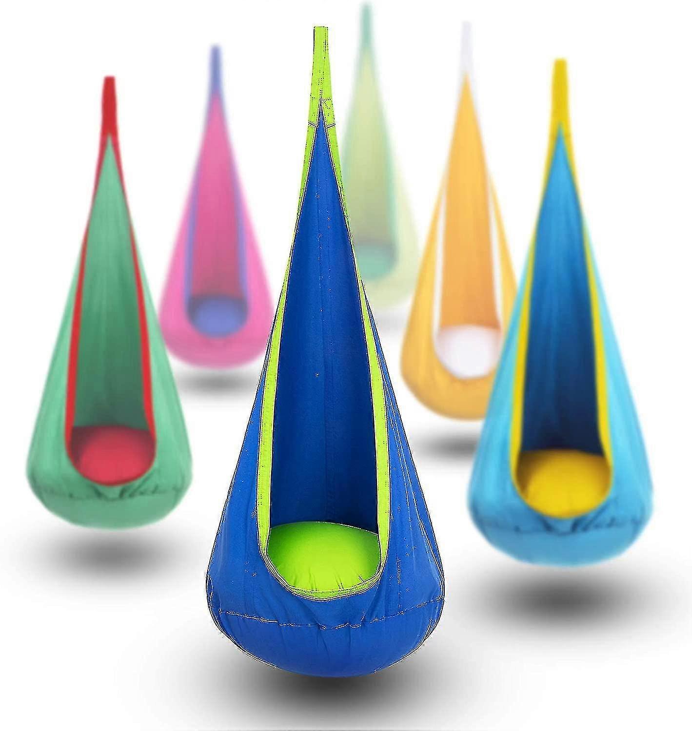 Kids Pod Swing Seat, Hanging Hammock Chair With Inflatable Pillow, Max 176lbs (1pcs,blue)