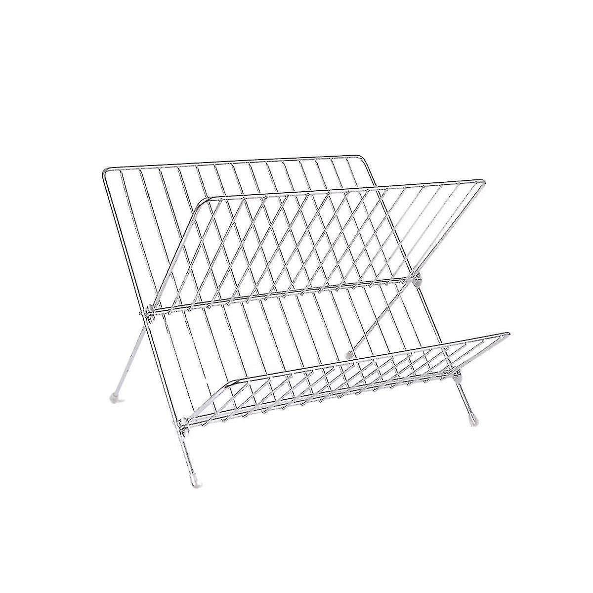 Kitchen Folding X-shaped Drain Rack Double-layer Wrought Iron Bowl Rack Drying Bowl And Plate Organ