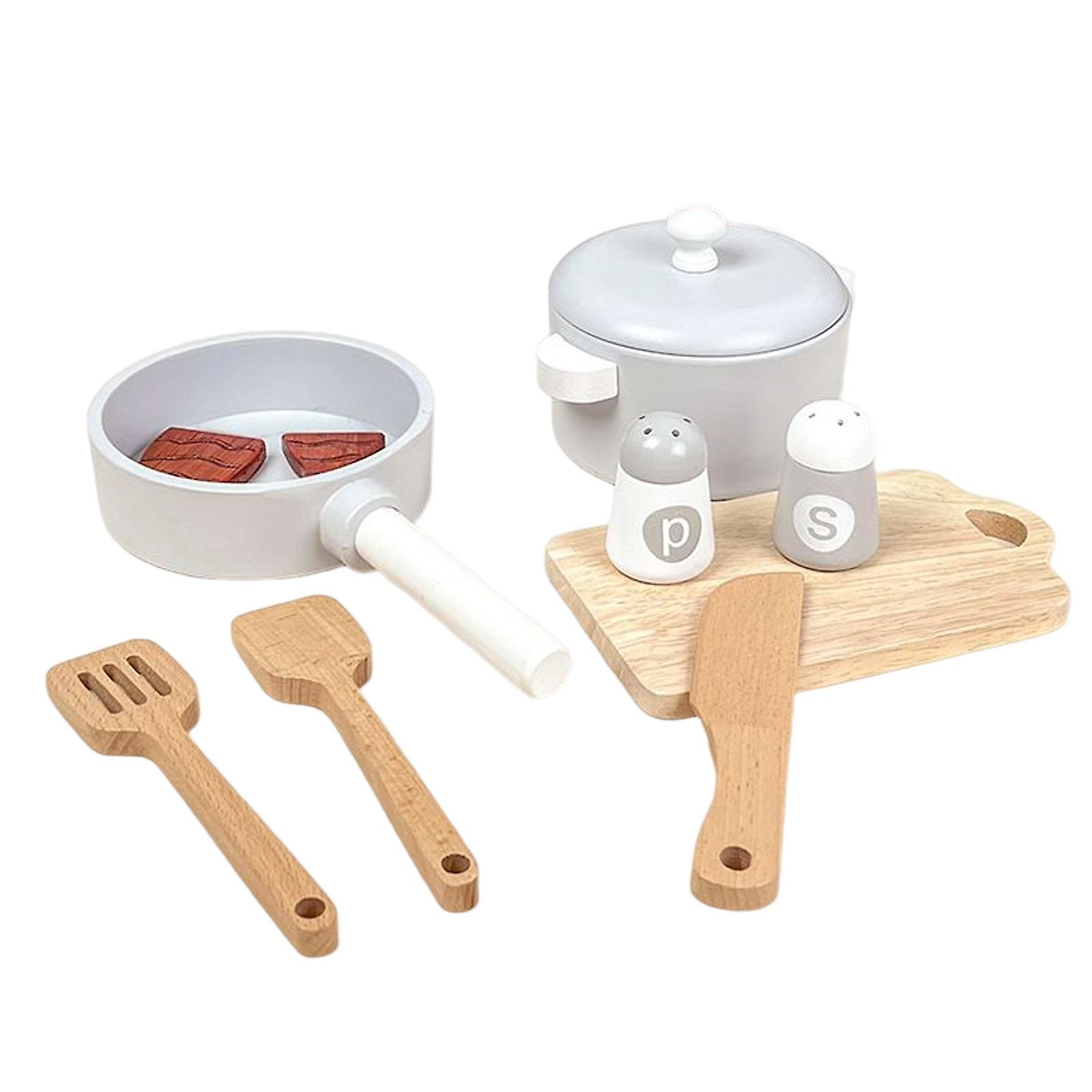 Description: MATERIAL: The kitchen cookware is made of wood material, which is strong and durable and has a long service life.SMALL SIZE: The mini dollhouse kitchen cooker is small and light enough to carry and play with.CULTIVATING ABILITY: kitchen set, can really cook, let children learn to cook, develop hands on ability and hands on abilityVERSATILE USE: Cooking toys are great accessories for doll houses, DIY or decorations.PERFECT GIFT: The perfect gift for Christmas, birthdays or holidays. Little chefs always want their little utensils to serve their guests like their parents. Gifts are durable and can last for many years. Specification: Material:Wood Size Chart: Approx.28cmx14.2cmx7.3cm/11.02inchx5.59inchx2.87inch Package Includes: 1 Set Children's Simulation Kitchenware Note: 1.This is not infant toy, please take away from children to avoid eating.2.Please allow slightly errors due to manual measurement and different monitors.
